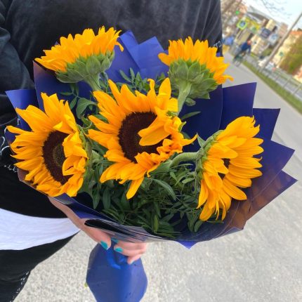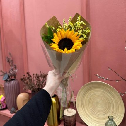 Букет-комплимент с подсолнухом, колосьями ( триникум), альстромерией , солидагой и зеленью