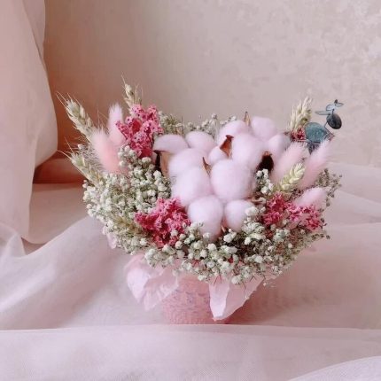 Сухоцветы в кашпо «Зайка»/ композиция из сухоцветов в деревянном кашпо