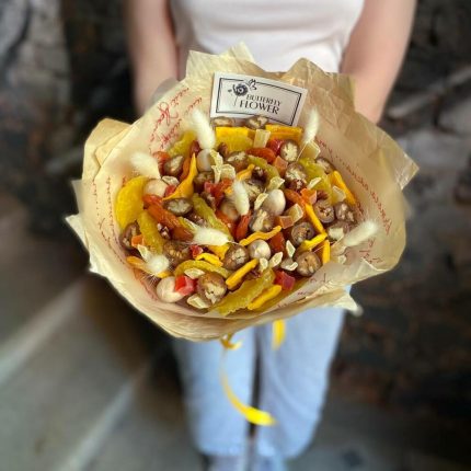Съедобный букет из сухофруктов, орехов и лагуруса “Восточный калейдоскоп”