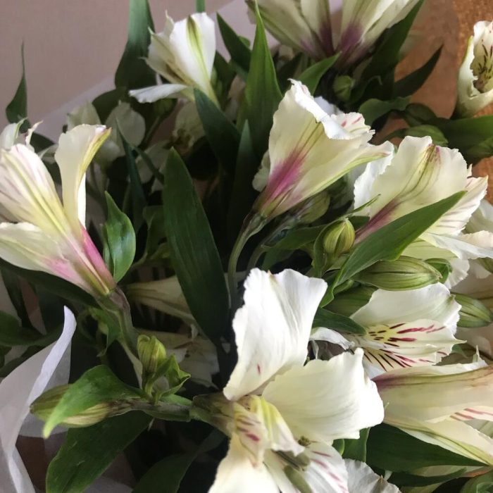 Альстромерия – 7 шт.Лента атласная – 1 шт.Тишью – 1 шт.крафт однотонный – 1 шт.