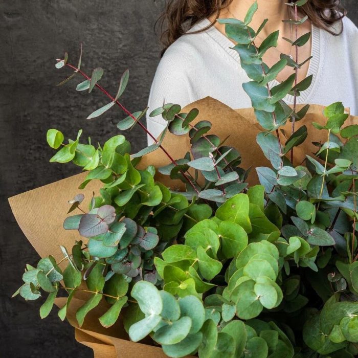 эвкалипт cineria – 10 шт.жгут натуральный – 1 шт.Средство для продления жизни цветов – 1 шт.Крафт дизайнерский – 1 шт.