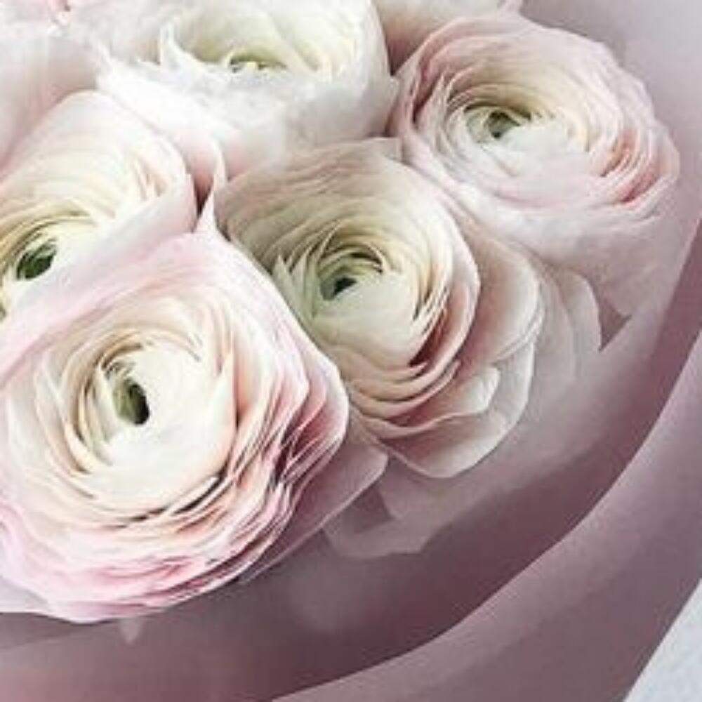 Ранункулюс (белый) – 11 шт.Дизайнерская упаковка – 2 шт.Лента атласная – 1 шт.