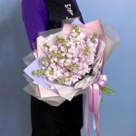 маттиола нежно розовая – 11 шт.Упаковка дизайнерская – 2 шт.Лента атласная – 2 шт.