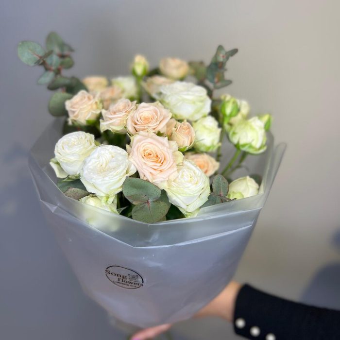11 кустовых пионовидных роз в дизайнерской упаковке