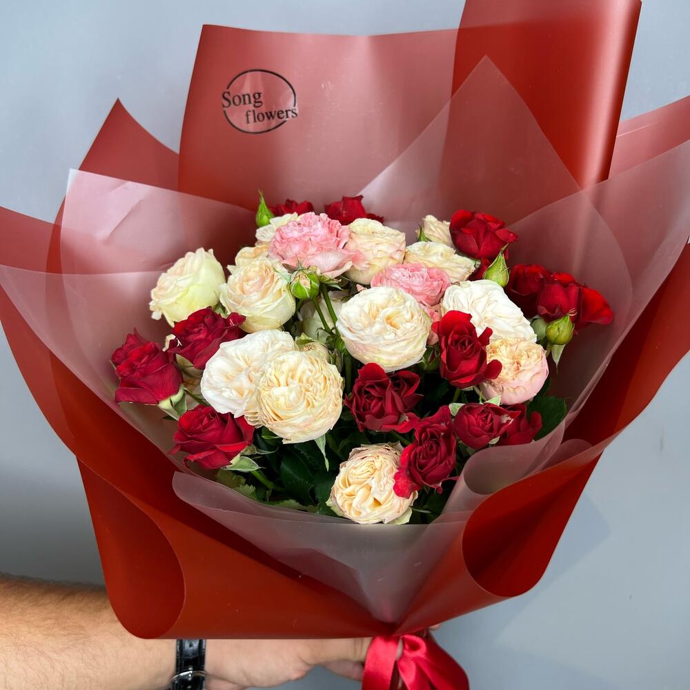 Кустовые розы, Лизиантусы, Пионы, Розы