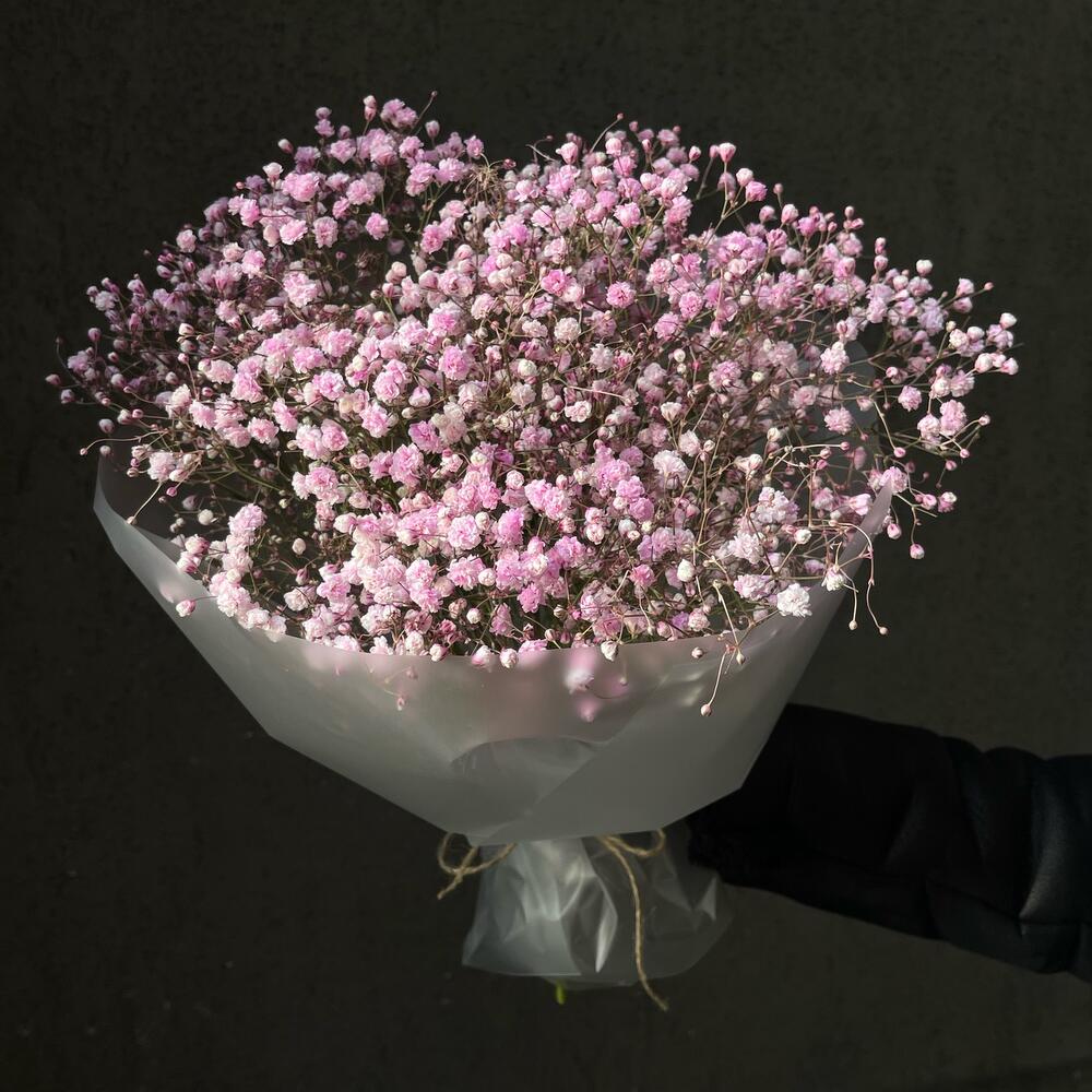 Букет 16: розовая гипсофила в упаковке