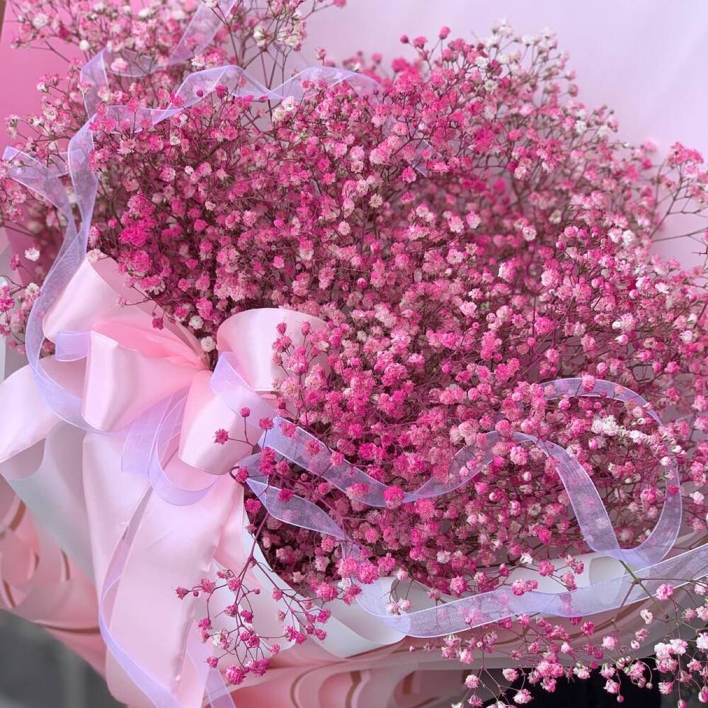 Гипсофила – 13 шт.Упаковка дизайнерская – 2 шт.Лента атласная – 1 шт.
