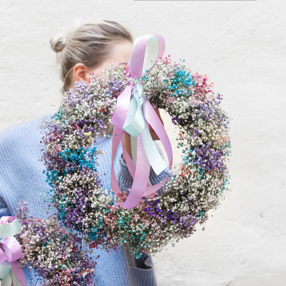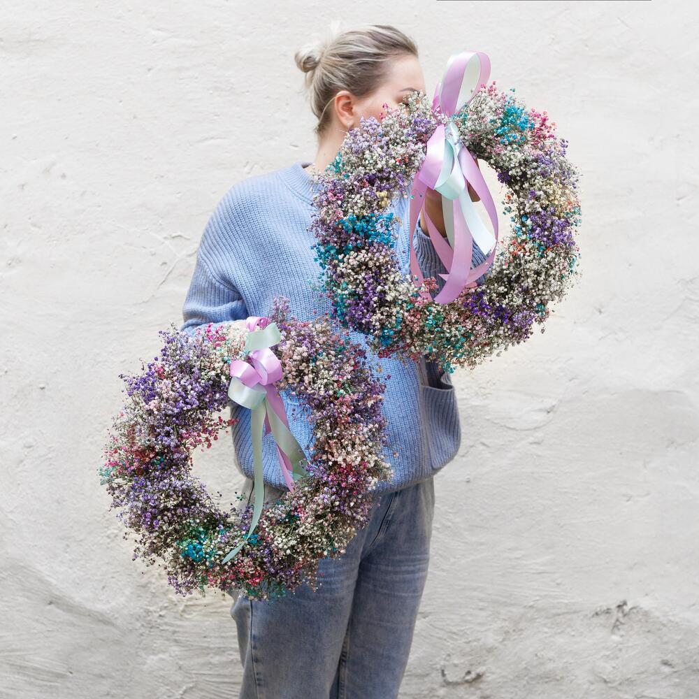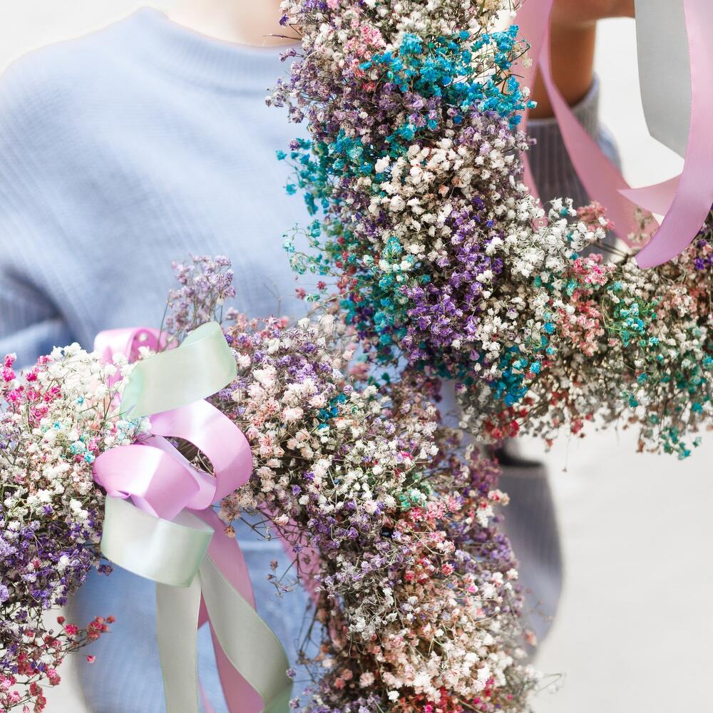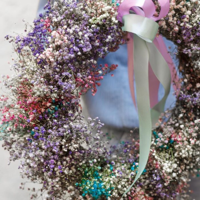 Воздушный венок из гипсофилы. Станет прекрасной деталью интерьера