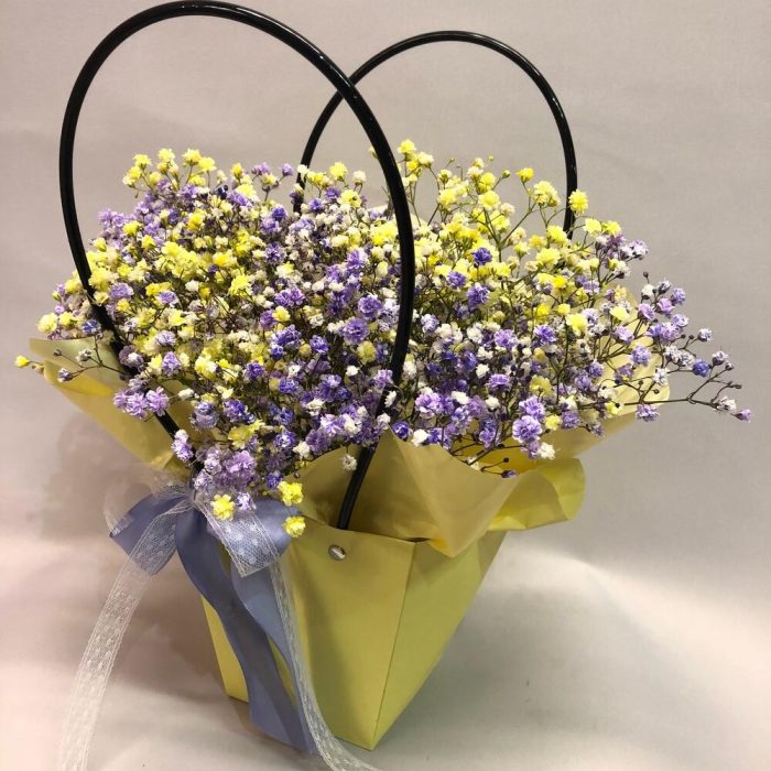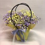 “Сиреневый туман” – композиция из гипсофилы в шляпной коробке