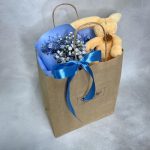 Подарочный набор – Букетик гипсофилы (размеры: 25 см высота, 20 см ширина) с мягкой игрушкой Lapkin. Доставляется в крафтовом пакете (высота 25 см, ширина 22 см, глубина 12 см).