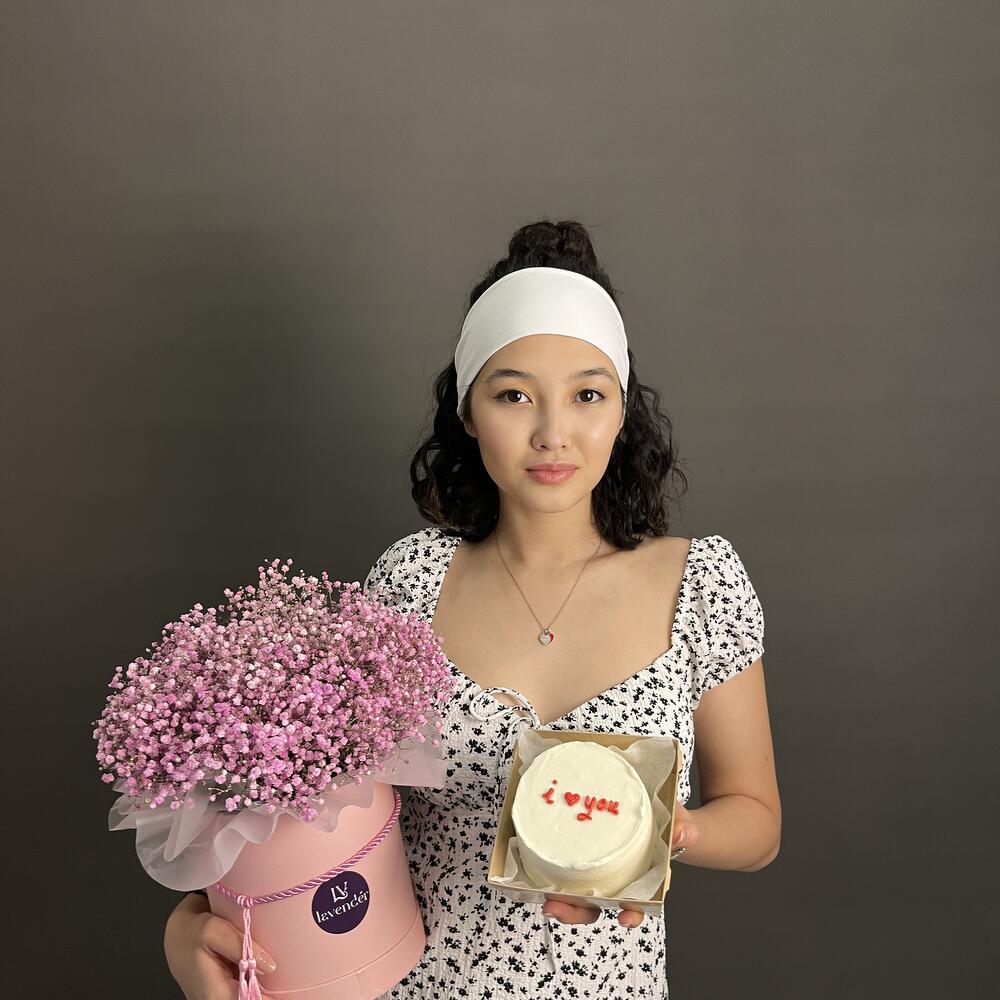 “Сиреневый туман” – композиция из гипсофилы в шляпной коробке