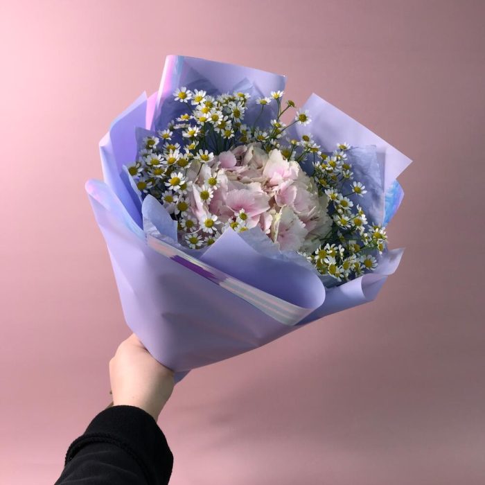 Гортензия – 1 шт.Матрикария – 6 шт.Тишью – 2 шт.Оформление – 1 шт.