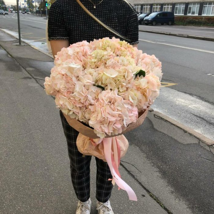 Красивый букет из 7 нежно-розовых гортензий "Суоранда"