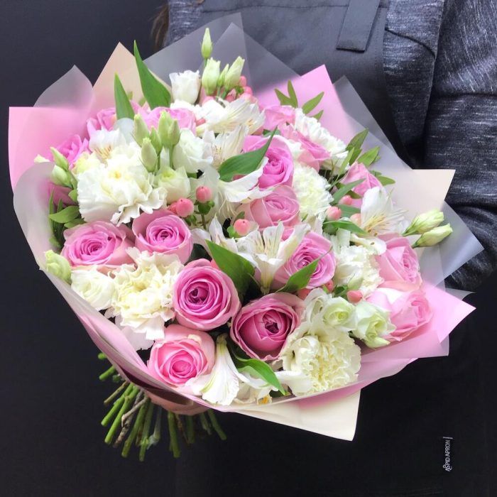 Гвоздики, Кустовые розы, Пионовидные розы, Розы