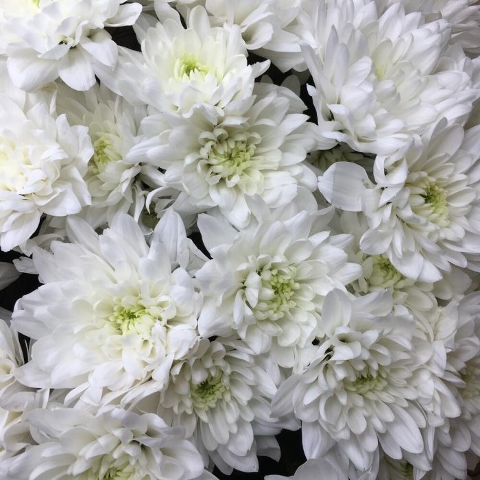 Лента атласная – 1 шт.Хризантема кустовая белая – 7 шт.Упаковка дизайнерская – 1 шт.