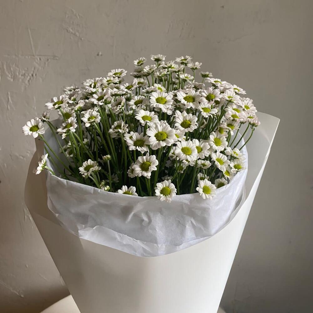 Букет из 25 кустовых хризантем Сантини микс в стильной упаковке