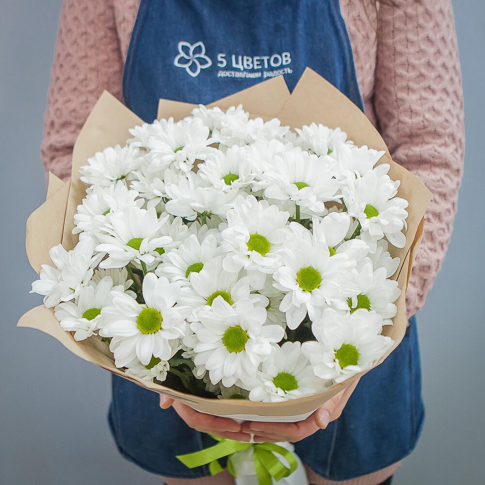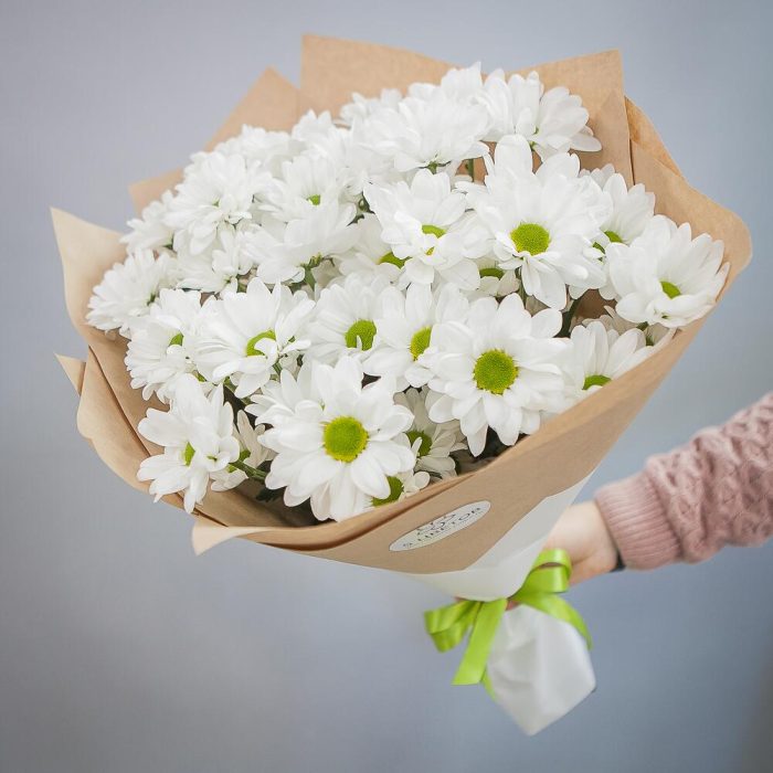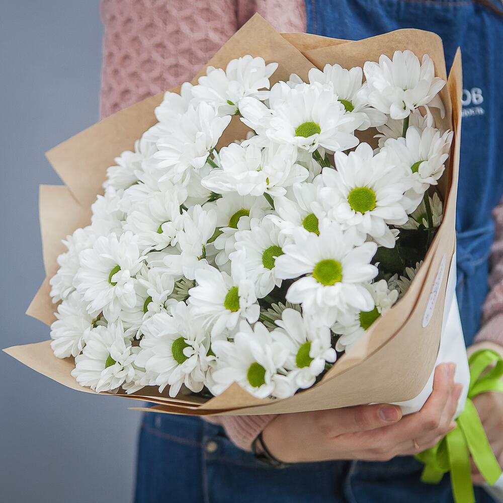 Букет из 11 белых хризантем Анастасия в стильной упаковке