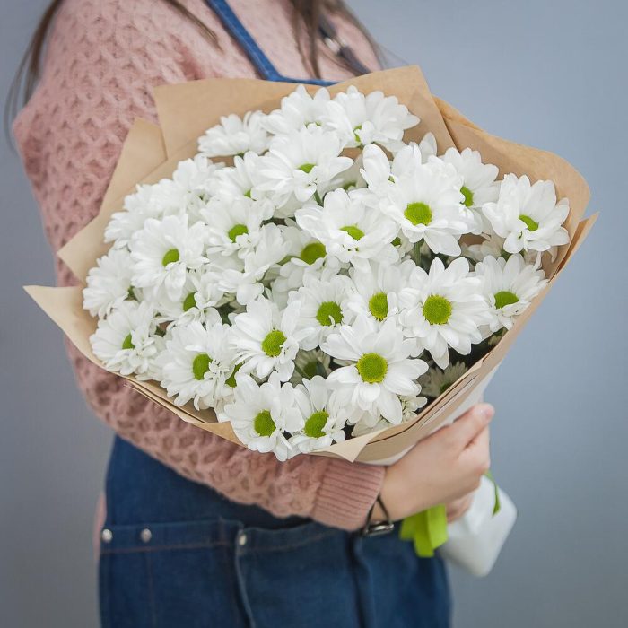 Букет из 15 кустовых хризантем нежный микс в стильной упаковке