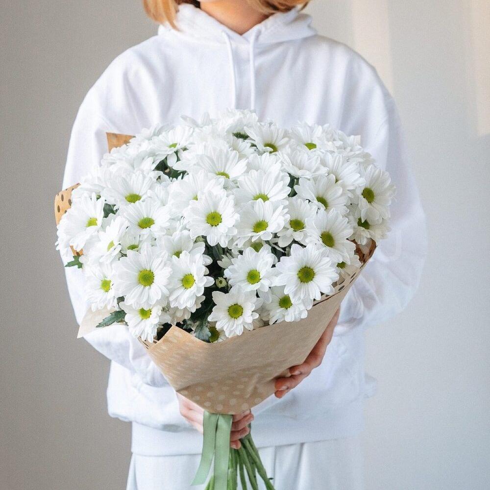 хризантемы кустовые – 7 шт.Упаковка крафт – 1 шт.Лента атласная – 1 шт.
