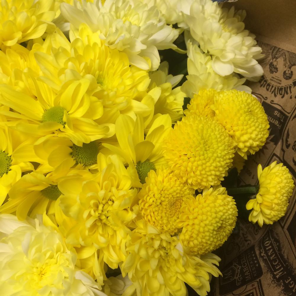 Хризантема кустовая – 17 шт.Рускус сочи – 7 шт.Упаковка крафт – 1 шт.