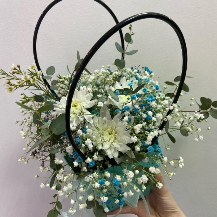 “Атлас☁️” – цветочная композиция с зефиром в деревянном ящике