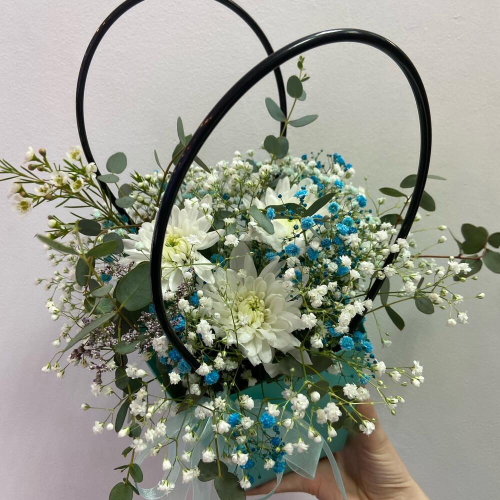 "Атлас☁️" - цветочная композиция с зефиром в деревянном ящике