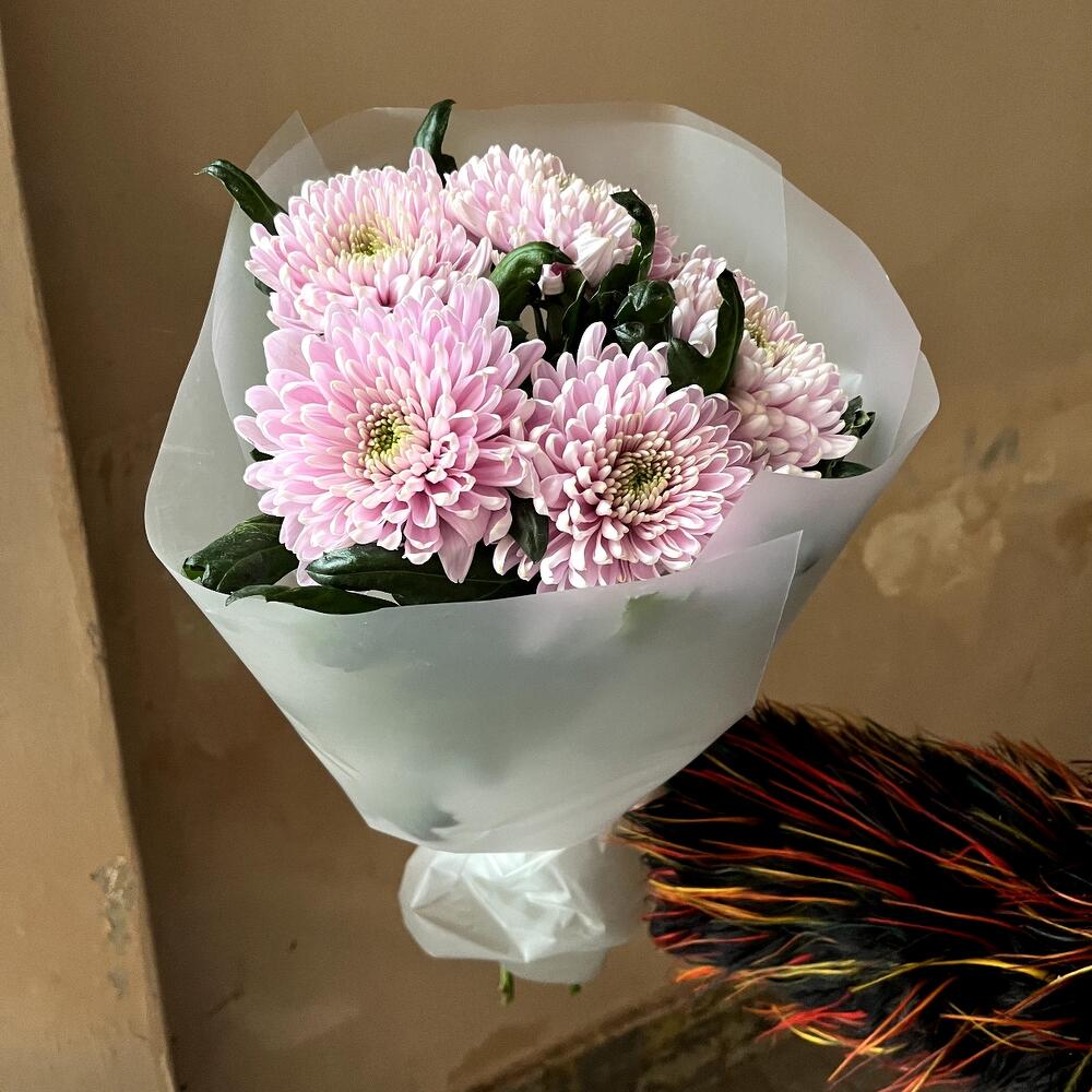 Авторская упаковка – 1 шт.сиреневые одноголовые хризантемы – 5 шт.