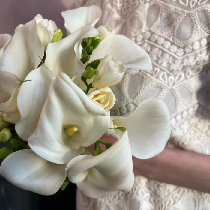 Калла – 11 шт.Фрезия – 4 шт.Атласная лента – 1 шт.