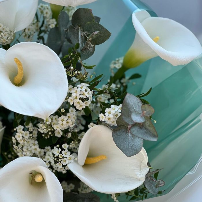 Что может быть прекрасней белоснежных калл? Только букет из калл от наших топ-флористов с добавлением необычного хамелациума и зелени в шикарном оформлении. Порадуйте своих близких чем то необычным