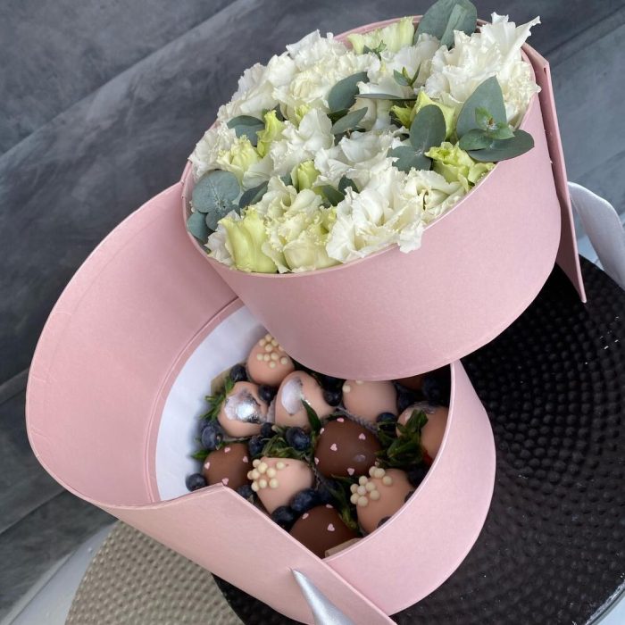 эустома белая – 5 шт.Клубника в шоколаде callebaut (бельгия) – 12 шт.