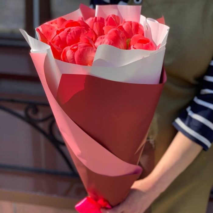 Пион коралл шарм – 7 шт.Упаковка дизайнерская – 1 шт.Лента атласная – 1 шт.