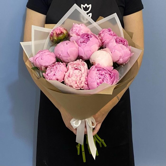 Лента атласная – 1 шт.Пион Сара Бернар – 11 шт.Упаковка крафт – 1 шт.