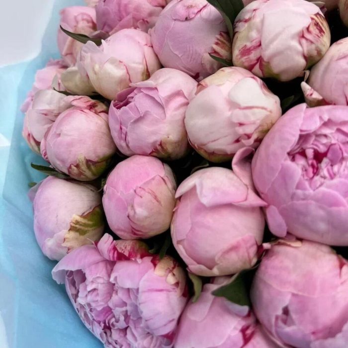 Лента атласная – 2 шт.Тишью – 1 шт.Пион Сара Бернар розовый – 51 шт.Дизайнерская упаковка – 5 шт.