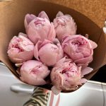 Лента атласная – 1 шт.Крафт упаковка – 2 шт.пион розовый рене – 7 шт.
