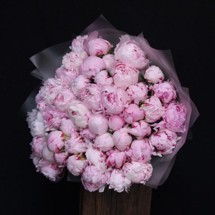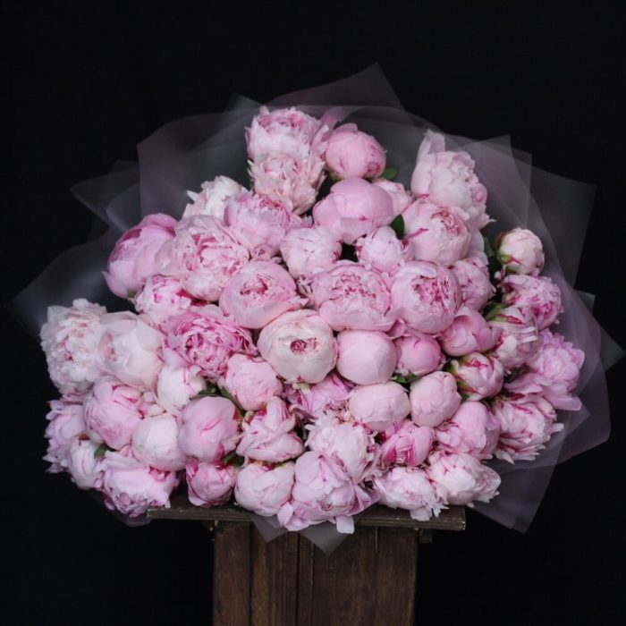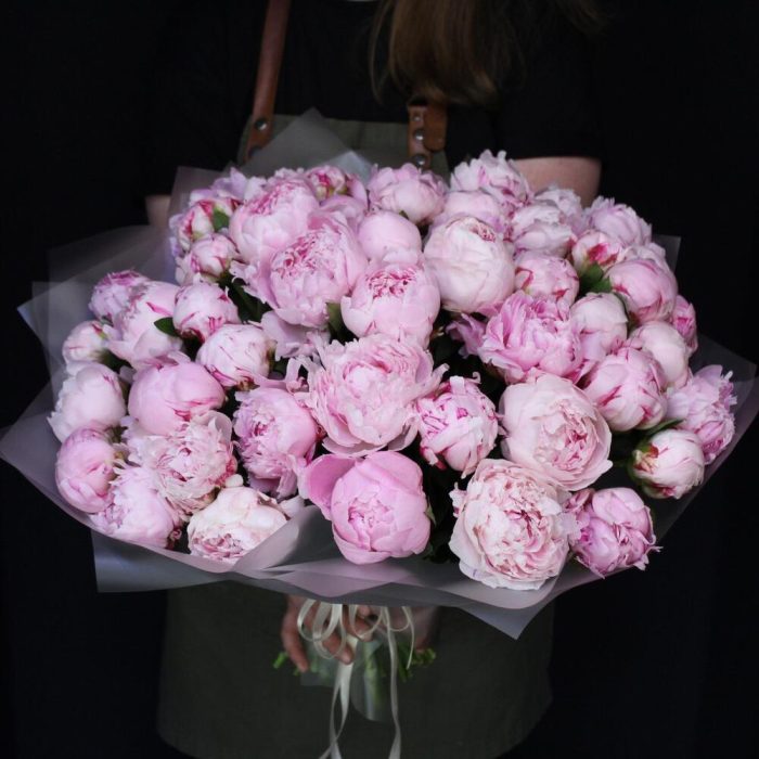Лента атласная – 1 шт.Пион Сара Бернар – 51 шт.Пленка матовая – 7 шт.