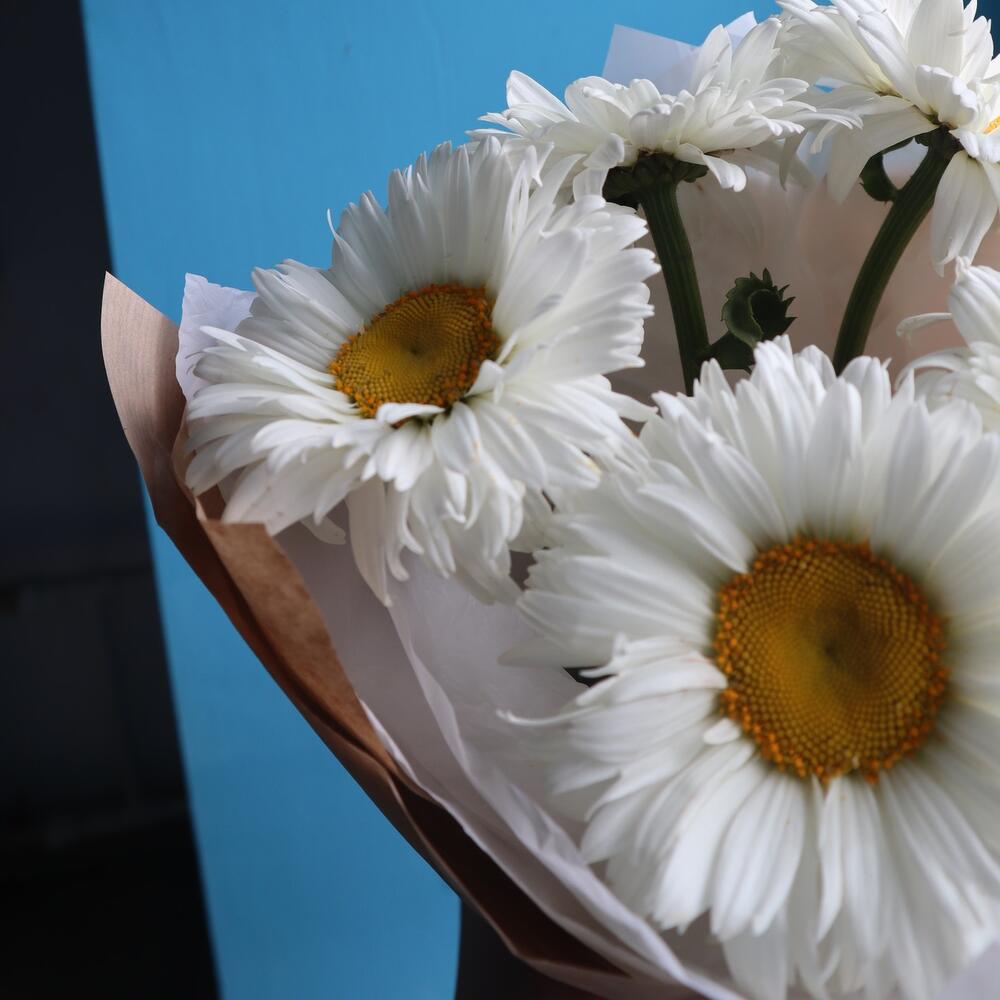 Ромашка полевая – 7 шт.Тишью белое – 2 шт.Крафт мятый – 2 шт.раыия натуральная – 1 шт.