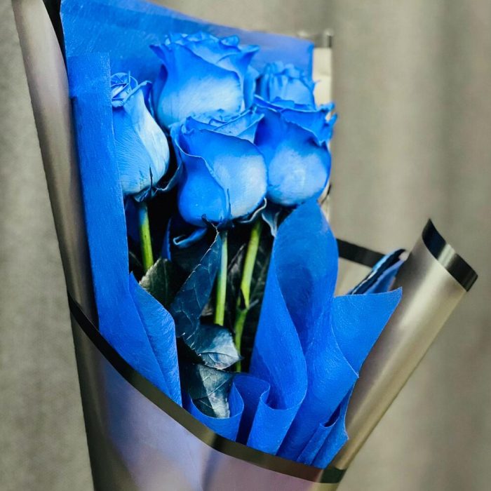 Роза синяя – 5 шт.Упаковка – 1 шт.Атласная лента – 1 шт.