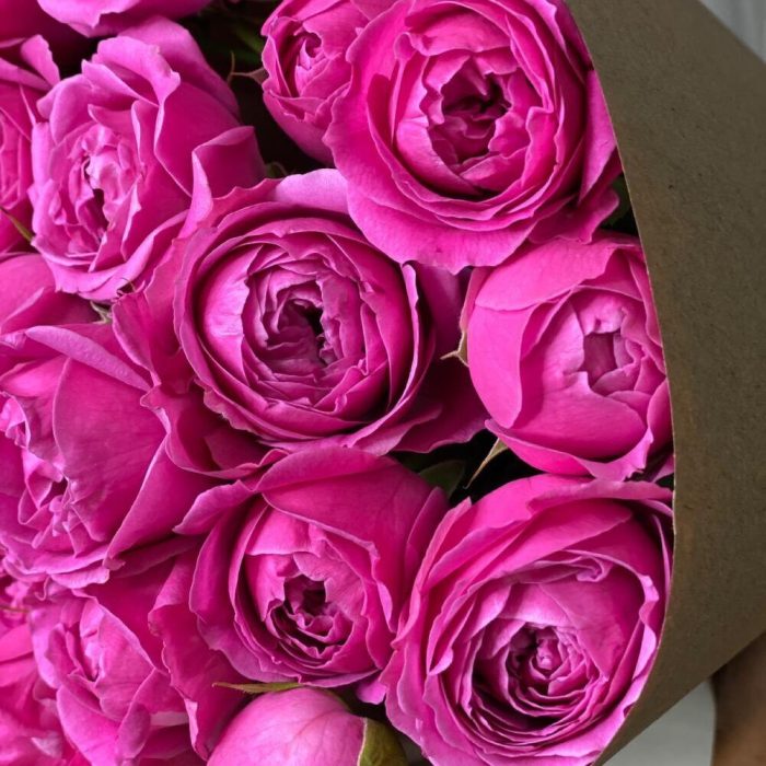 Пионовидные кустовые розы , сорт Мисти Баблс в крафт упаковке
