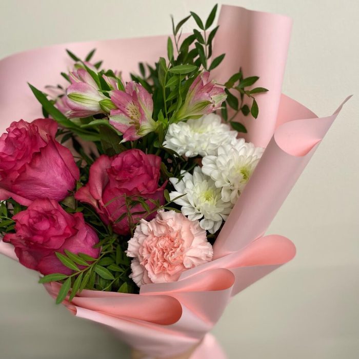 Категорий: Альстромерии, Гвоздики, Кустовые розы, Розы, Хризантемы
