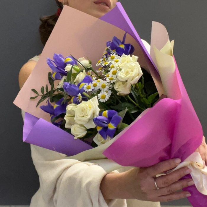 Авторский букет «Ирисы и ромашки»
