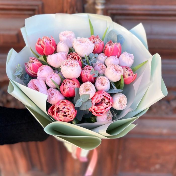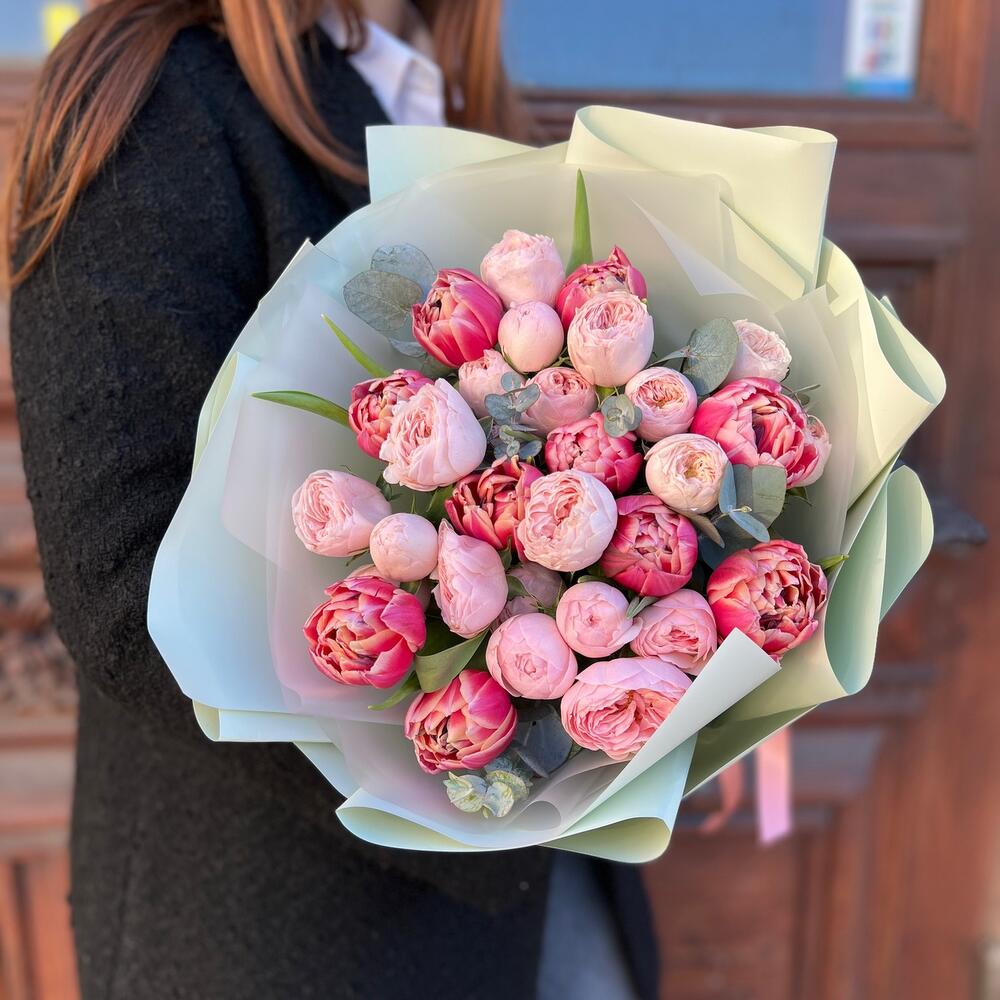 Категории: Пионовидные розы, Розы, Тюльпаны