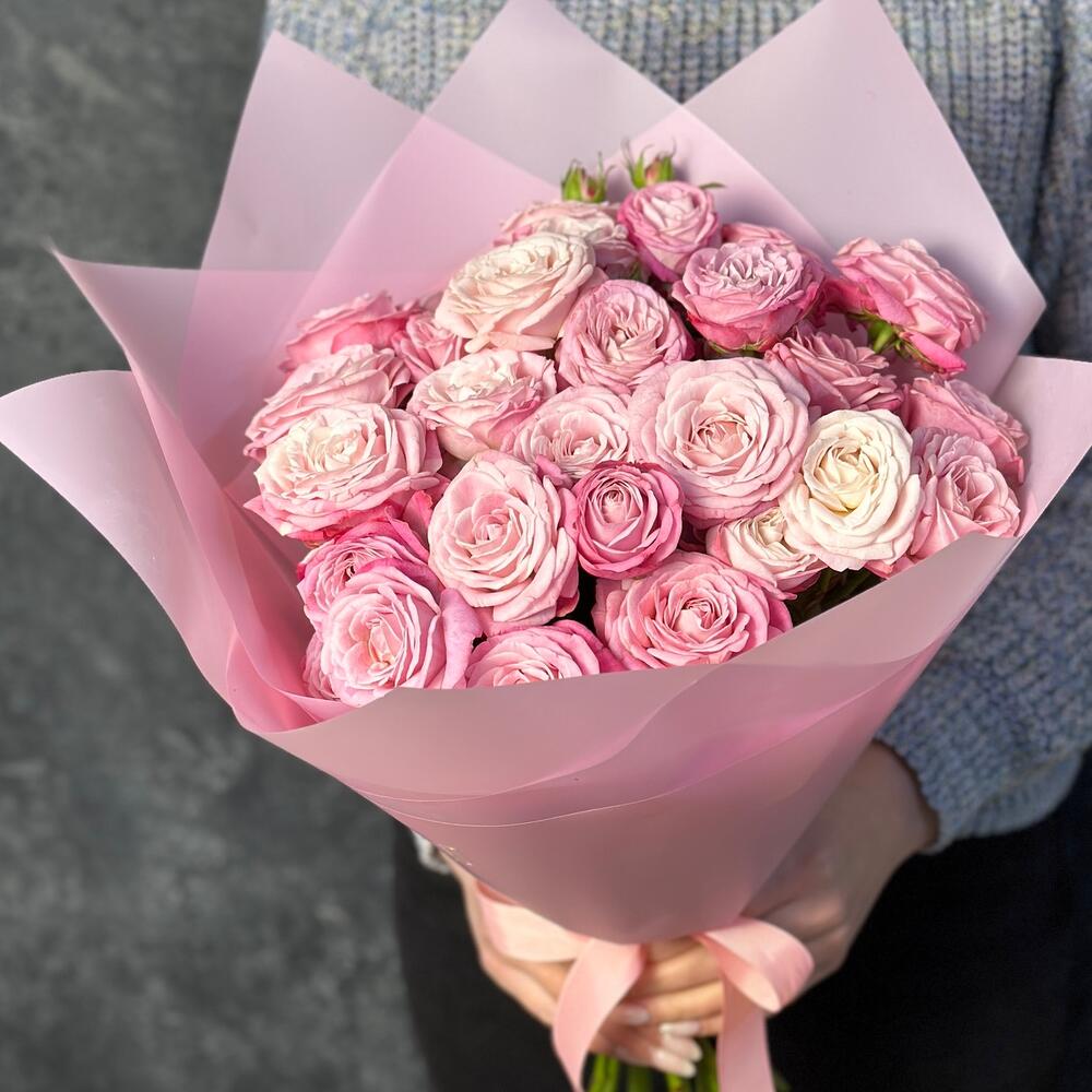 Букет из 11 кустовых пионовидных розовых роз