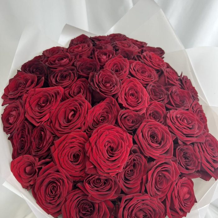 Роза – 51 шт.Упаковка – 3 шт.Атласная лента – 1 шт.