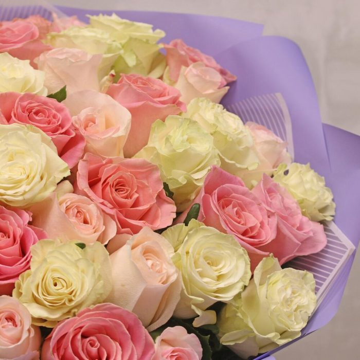 Букет из 51 розы premium нежный микс 40-50 см (Эквадор) в стильной упаковке