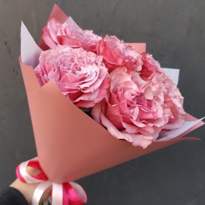 Большой букет из кустовых пионовидных роз Мадам Бомбастик