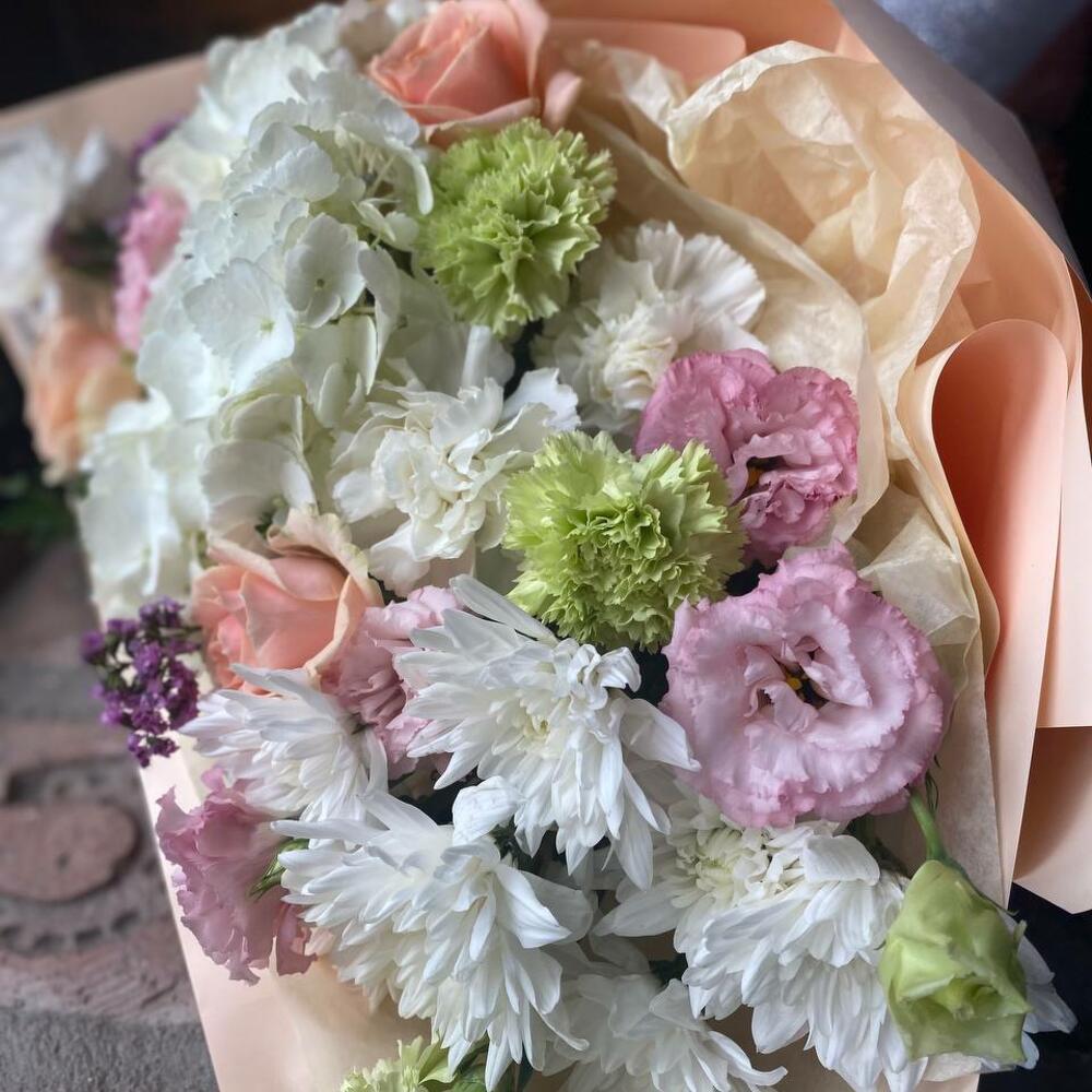 Категорий: Гвоздики, Гортензии, Кустовые розы, Лизиантусы, Розы, Хризантемы