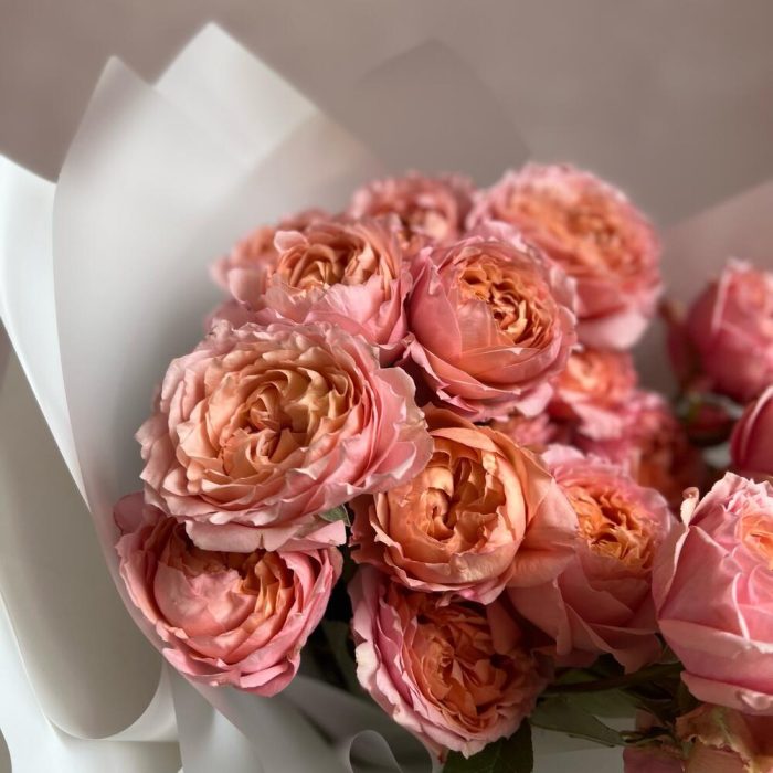 кустовая пионовидная роза julieta – 5 шт.декоративная упаковка – 1 шт.Атласная лента – 1 шт.