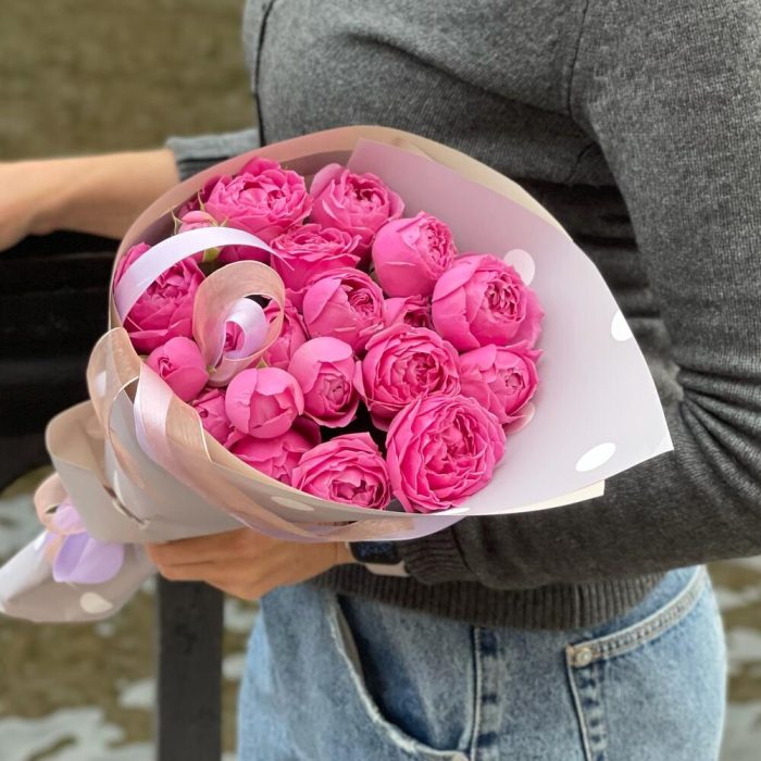 Лента – 1 шт.Упаковка дизайнерская – 1 шт.роза мисти бабл пионовидная – 5 шт.
