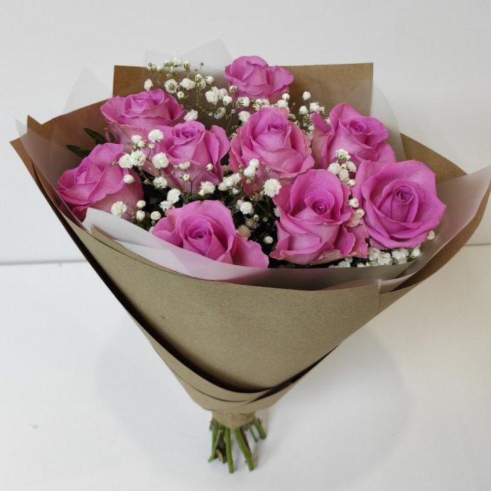 Роза – 9 шт.Гипсофила – 1 шт.Крафт – 1 шт.