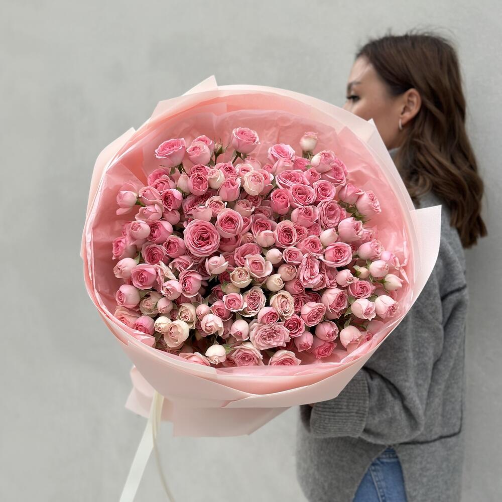 Пышный букет из изящных спрей роз в нескольких оттенках.